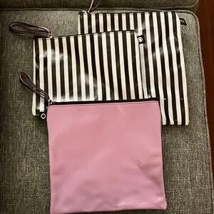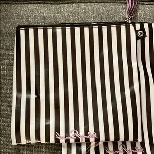 Stylish and chic, this Henri Bendel bag set features a striking brown and white striped design. Perfect for any occasion, these bags offer both fashion and functionality.beautiful bags great for storage or packing for vacation