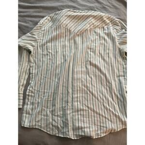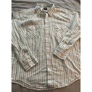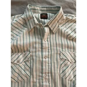 Vtg. Western Fashions White with Green striping Long Sleeve Shirt