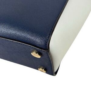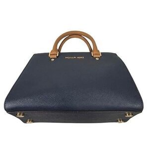 Michael Kors Selma Saffiano Leather Satchel Shoulder Bag Tricolor Navy White Tan