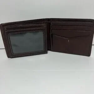 Fossil Dark Brown Leather Tri Fold Wallet for Men