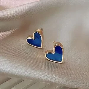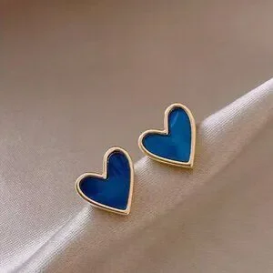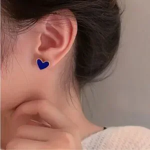 NEW Hailee 18K Gold Plated Navy Blue Enamel Heart Stud Earrings