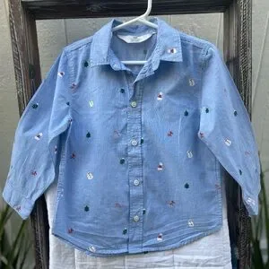 This charming kids' button-up shirt features a delightful festive embroidery, perfect for any Christmas occasion. The soft blue color adds a touch of elegance, making it a versatile addition to your child's wardrobe.