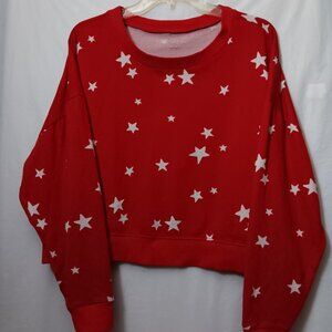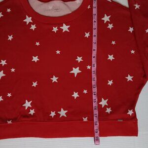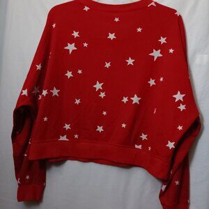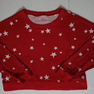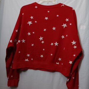 Size Medium Women's GILLY HICKS by HOLLISTER Red color long-sleeve cropped pullover Sweatshirt with White color stars the Material is 96% Polyester/ 4% Elastane in pre-owned condition Note Some Wear as seen in photos