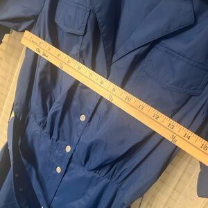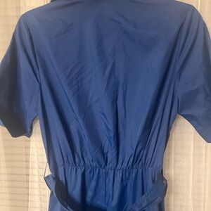 Elegant navy blue dress with short sleeves. Perfect for any occasion.