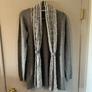 Rickis Grey open cardigan with built in Scarf Sz S. One owner. Excellent Used Condition. Make it yours!