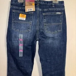These Carhartt jeans feature a timeless straight leg cut in a medium to dark blue wash, offering a versatile and classic look. The denim is of standard weight, providing durability and comfort for everyday wear. With a slightly worn-in appearance, these jeans are perfect for casual outings.