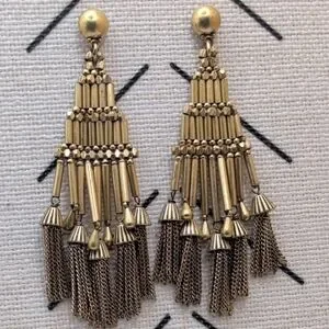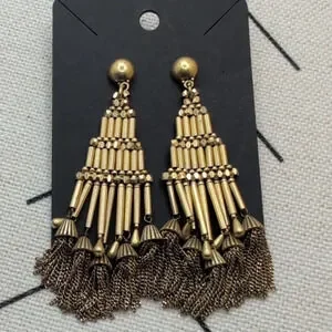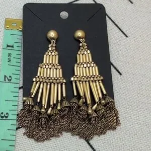 J. Crew Gold Chandelier Earrings with Tassel Fringe