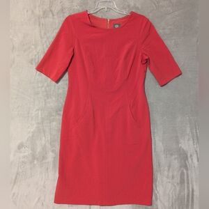 Vince Camuto Woman's Shift Dress Pink Pockets Gold Zipper Size 8 Lined