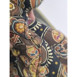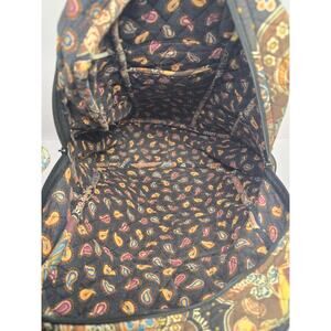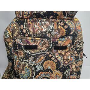The Veta Bradley Retired Kensington Paisley Backpack is a stylish and spacious backpack designed for women. Made from cotton with a multicolor exterior and lining, this large backpack features a unique Kensington Paisley pattern. The multicolor handle/strap adds a vibrant touch to the overall design. Perfect for everyday use, this backpack is both functional and fashionable, making it a versatile accessory for any outfit. It is a retired model from Vera Bradley, showcasing a blend of style and practicality.