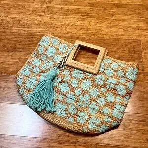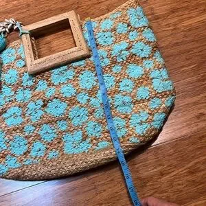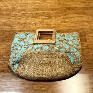 Twigs & Arrow Handmade Jute Hand Painted Oversized Boho Tote Bag w/ Wood Handle