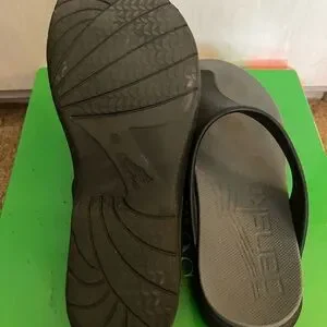 Comfortable black and gray slide sandals. Perfect for casual wear.