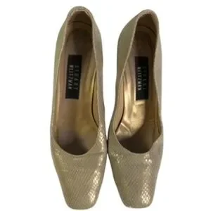 Stuart Weitzman 3" Snake Print Leather Tan Heel Pumps Size 7.5 B