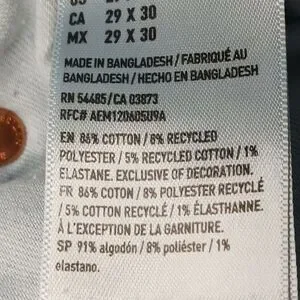 86% cotton 8% recycled polyester 5% recycled cotton 1% elastane.