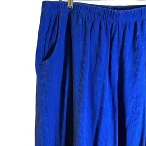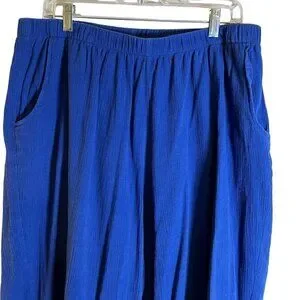 Denim & Co Women's Gauze Capri Blue Pull-On Pants with Pockets Size 1X