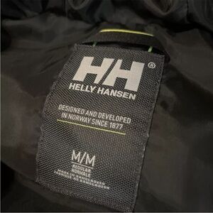Women’s Helly Hansen Black Cheetah Print Puffer Jacket Hooded 3/4 Zip Sz M