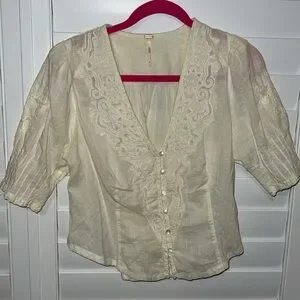Free People Laurie Embroidered Blouse BEIGE SIZE SMALL