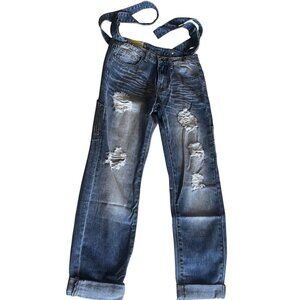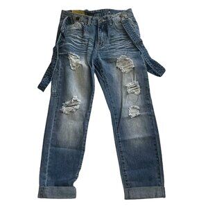 MACHINE Nouvelle Mode Women's Distressed Suspender Cotton Shredded Jeans Size 26