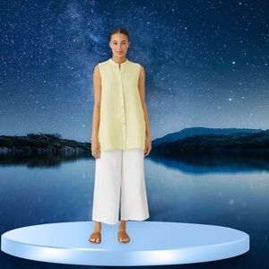 This cotton tunic by Eileen Fisher is designed in a sleeveless style.