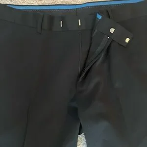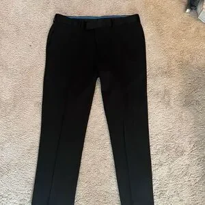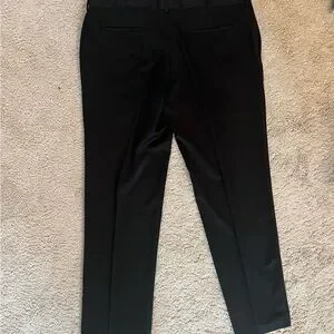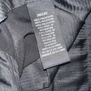 Classic black dress pants. Perfect for formal occasions. Sleek and stylish design. 38x32, 100% polyester. Machine wash warm.