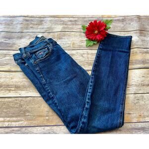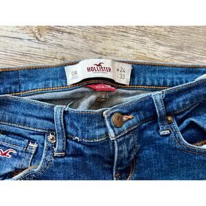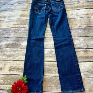 Hollister. Excellent condition. Size 0. Social stretch. Dark denim rents. Straight leg. 99% cotton. 1% elastine. Waist 24”. Length 33”.