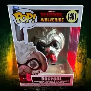 Brand new 2025 deadpool & Wolverine Dogpool pop. Pop has dogpool a Pugese named Peggy as dogpool ready for action. Pop is in near perfect condition and will be shipped in a compatible pop protector.