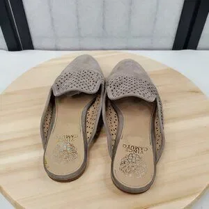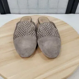 Vince Camuto Perforated Suede Mule Slip On Flats Tan Gray Women US 8M