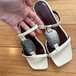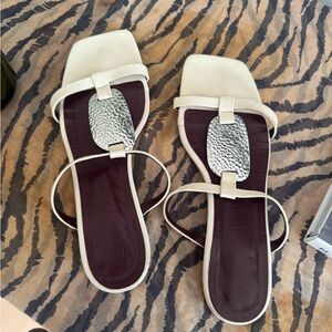STAUD White / Cream Flat Sandals with silver hardware