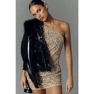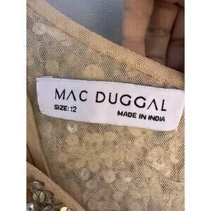 Mac Duggal 10977 Nude One Shoulder Asymmetric Sheer Hand Beaded Mini Dress Sz 12