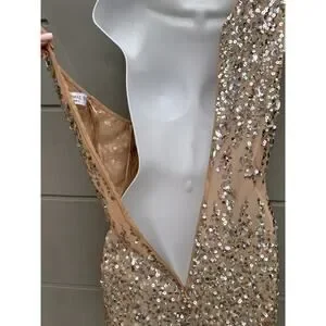 Beaded dresses can be in fantastic condition and still end up with a few sequins and beads missing, just as they could in the store. Item as shown in photos