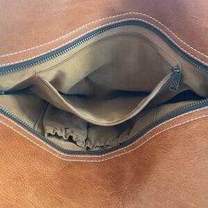 Here is a favorite pattern by Patricia Nash, the “Spring Multi” pattern print from her classic “Heritage Collection”. This is a wonderful “everything” bag that comes with detachable shoulder and crossbody straps in tan leather allowing a true “custom fit” for all your needs be it shopping, travel, museum or the beach. Made of Italian leather, it is also lined in a plush faux beige suede found in all Patricia Nash handbags. A hidden snap pocket is found on the back to hide keys with two slip pockets and a large zippered pocket inside the main compartment. Interior compartment is in “mint like-new” condition. Some discoloration found on the top of the shoulder straps (please see photo). This has years and years of life in it as it has been very gently used and presents in EUC. Comes with a Patricia Nash dust bag. Ready to bring an early spring and take you anywhere you want to go! Ships out quickly!