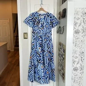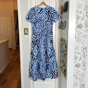 Anthropologie Somerset Hawaiian blue tiered maxi dress