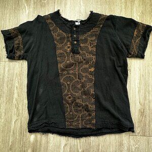 Mens WASKA Top Black Sacred Plant Shipibo Shaman Pattern T Shirt Shamanic Neo Tribal Gypsy Ritual Festival Ceremony Ethnic Handmade