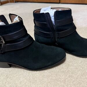 Vionic Black Ankle Booties with Suede Texture and Strap Detail