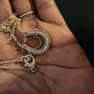 Judith Ripka horseshoe pendant necklace. I've had this for a few years. Used 2 be one of my go-to's. It's been hanging on my jewelry tree, un bothered. Still in fantastic condition and bright. Ready 4 a new home. Ask me anything.🥰🤗