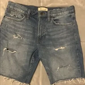 Madewell womens Distressed Denim Shorts Sz 32 17 in long