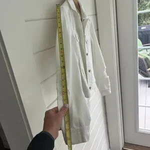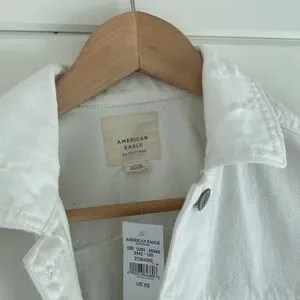 * Denim jacket from American Eagle that is white with buttons in the front and at the cuffs