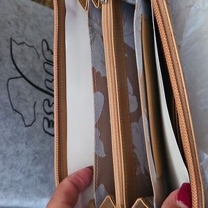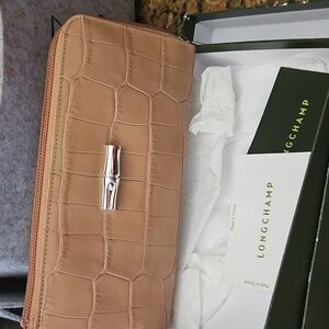 This elegant wallet showcases a chic crocodile pattern in a refined tan color, accentuated by silver hardware. Its new in box. i do trade .thanks again for shopping my closet