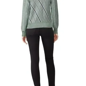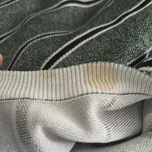 Elevate your style with this green striped sweater. Perfect for any occasion, it offers both comfort and fashion. Stain on inside of shirt not visible on outside and may wash out.