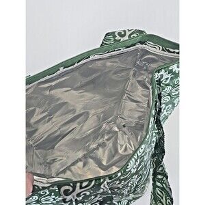 Sachi Foldable Insulated Market Tote Zippered Shopper Bag Green BoHo Print Snap