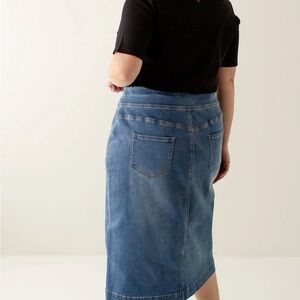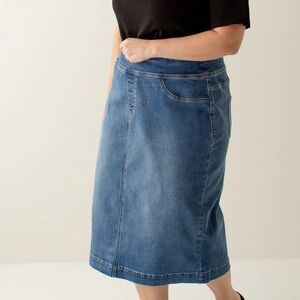 'SARA' CLASSIC KNEE LENGTH SKIRT IN MEDIUM WASH, 26 in length