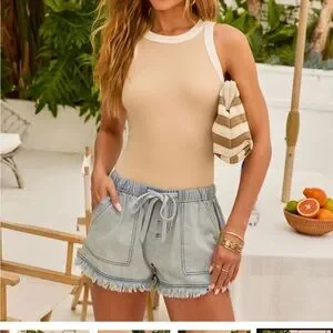 Saddleback Pocketed Frayed Tencel Shorts Large NWOT