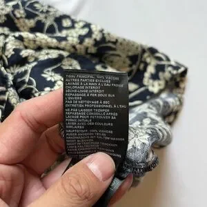 Viscose, size 1. In excellent condition no flaws. Not sure if black or navy but likely a cool tone black.