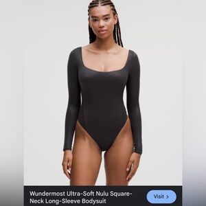 LULULEMON Wundermost Ultra-Soft Nulu Square-Neck Long-Sleeve Bodysuit Shine M