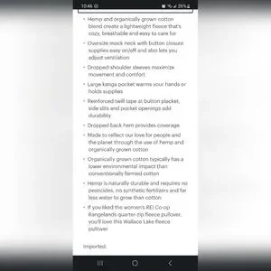 NWT REI Hemp Cotton Fleece Pullover Sweater Medium