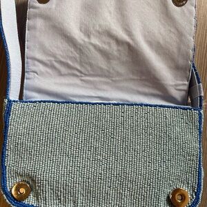 Stylish shoulder bag with a unique beaded fish pattern. Perfect for adding a touch of fun to any outfit.