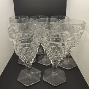 8 Fostoria American Water Tea Glasses Goblets Hexagon Footed Pedestal Crystal