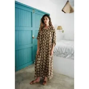 Christy Dawn The Rumi Mocha Daisy Beige Block Floral Print Maxi Dress Size XL