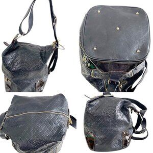 Marino Orlandi Italian Embossed Black Leather Sling Convertible Bag