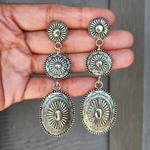 Medallion Gypsy Earrings Silver Bohemian Metal Tribal Ethnic Vintage Style