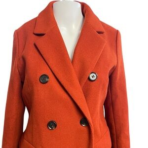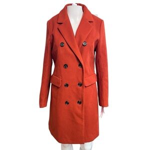 Allegra K NWT Women’s Burnt Orange Pea Coat Double-Breasted Knee-Length Sz. SM